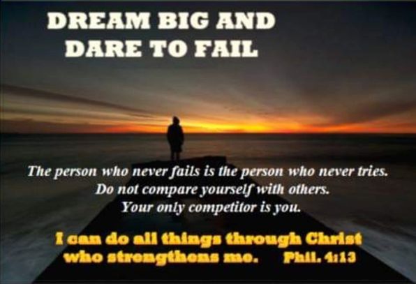 Achieving dreams in life involves "unlearning" our fear of failure. One way to do this is to try new things. The reason we do not have new things, because we are still living in the past. "Forget the former things; do not dwell on the past. For I am about to do something new. See, I have already begun! Do you not see it? Isaiah 43:18,19.
